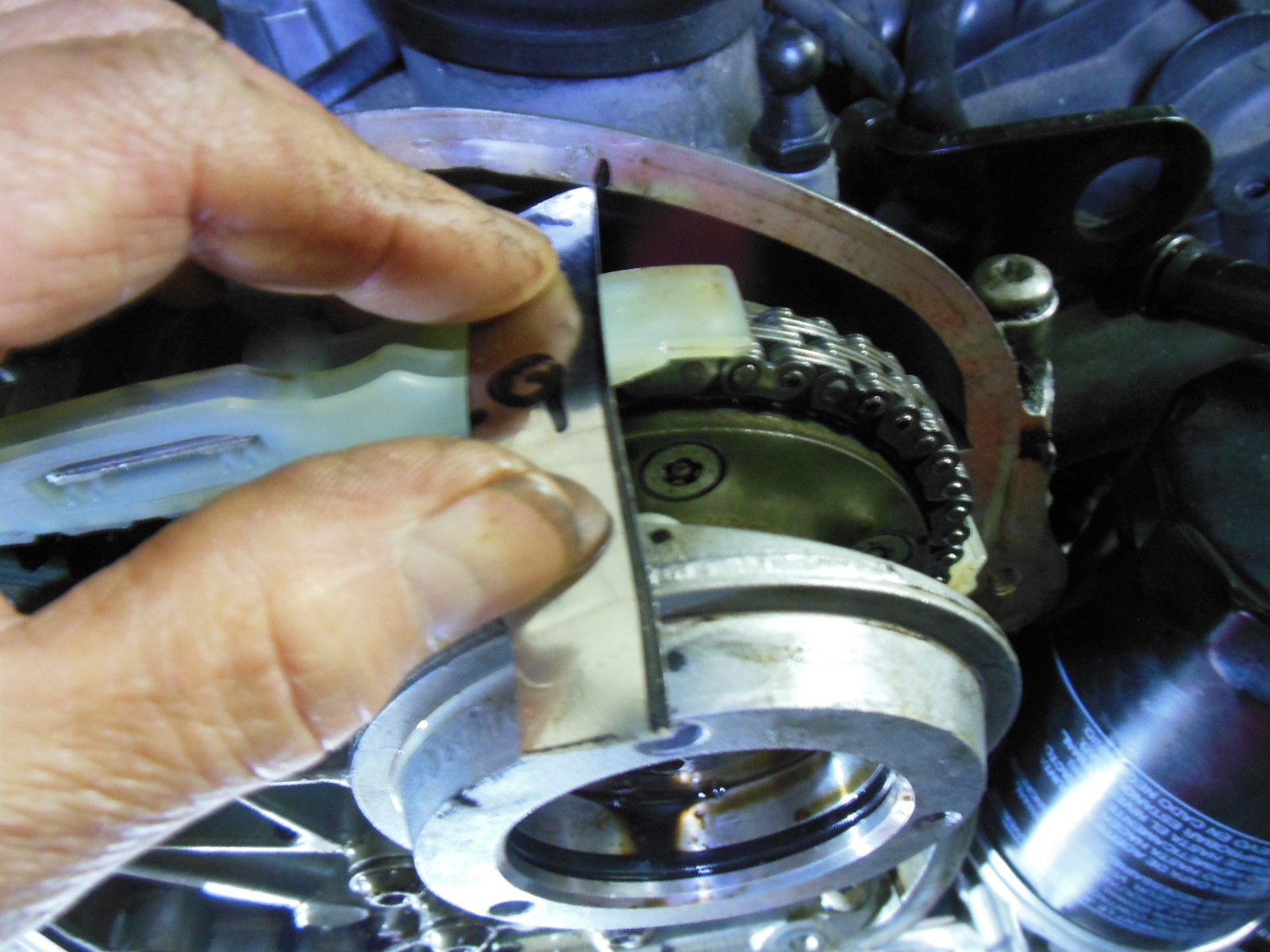 見えてきました、このエンジンはチェーンが3本あります。