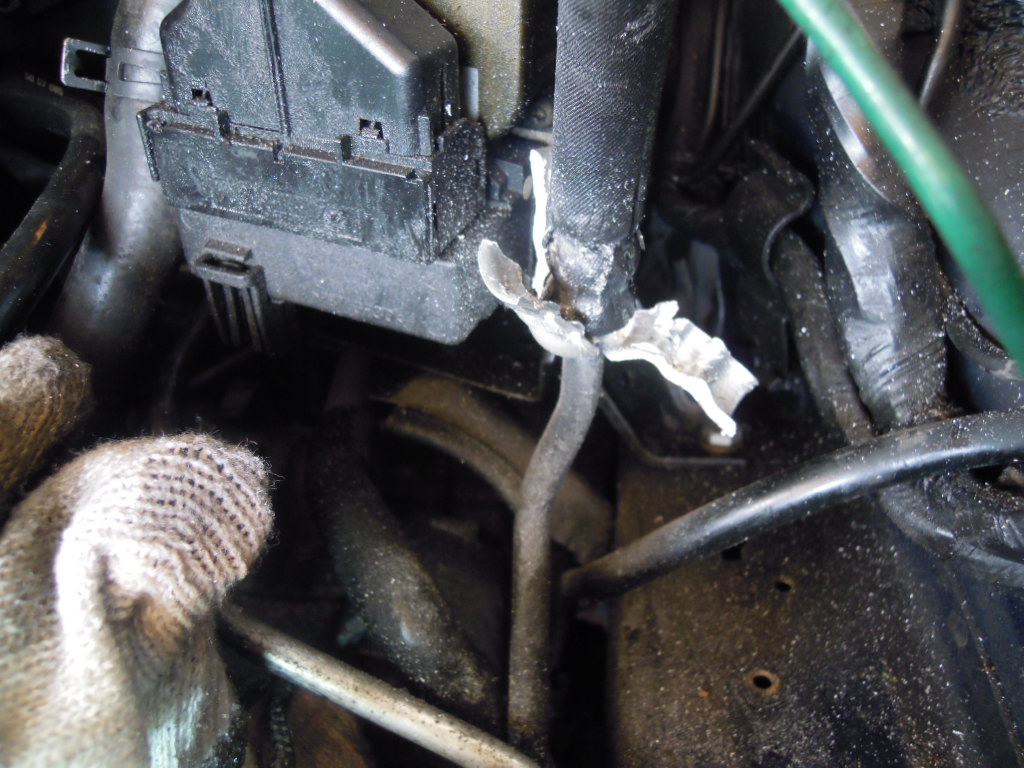 ホースのカシメをハンドグラインダーで削り