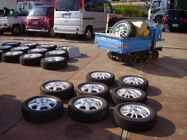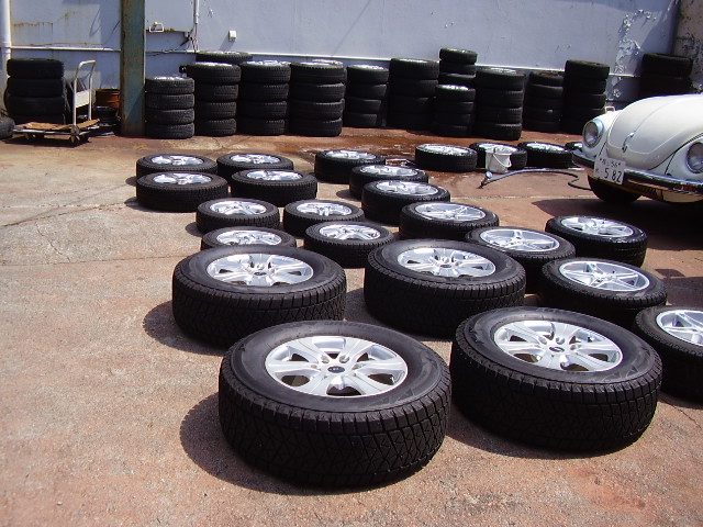 まず初めに、スタッドレスタイヤを洗います。