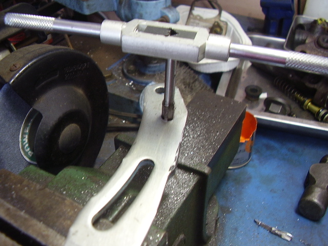 新しいブラケットにはタップでネジを切りました。