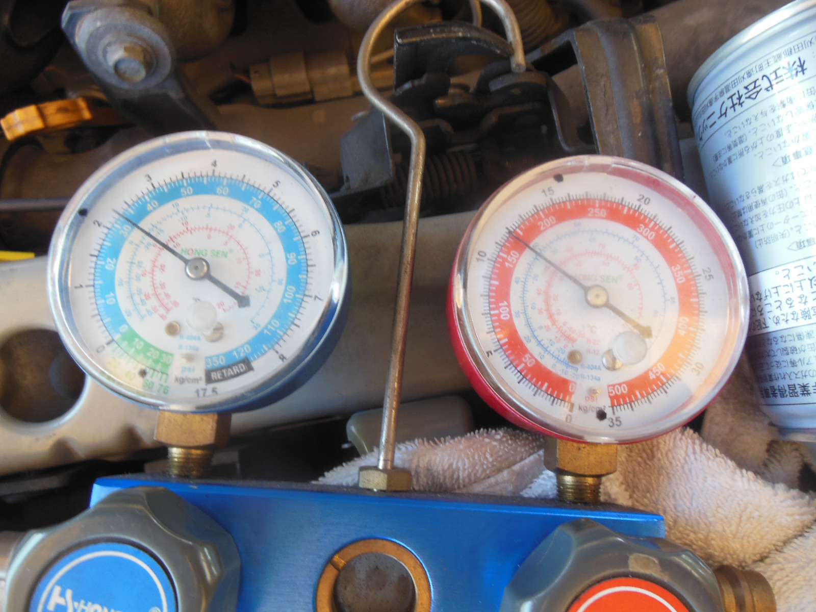 ゲージでは少し低圧が高く高圧が少し低い?
