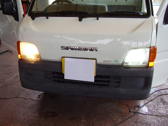 取り付ける車両がスバルサンバーなのでライト後部に