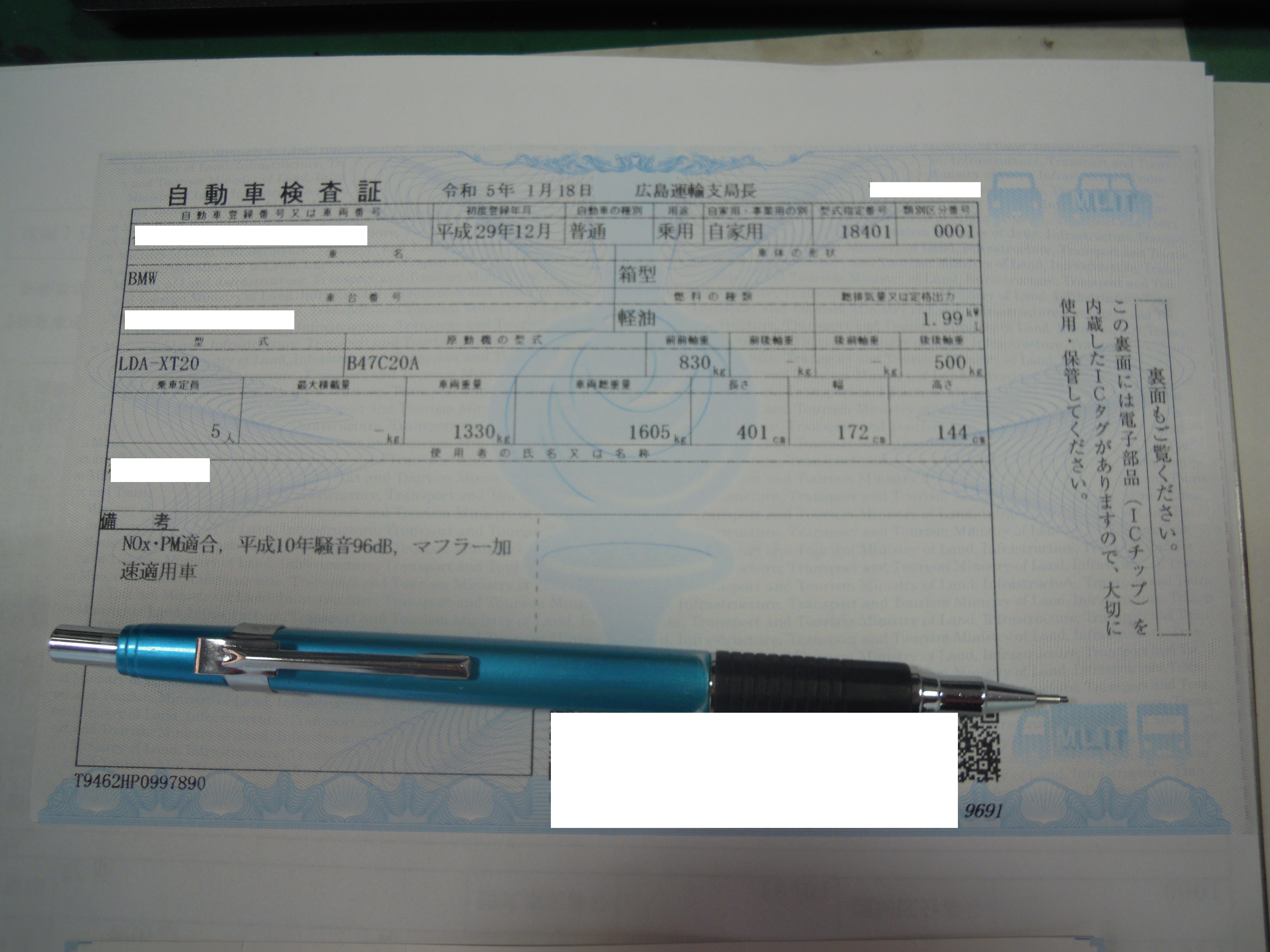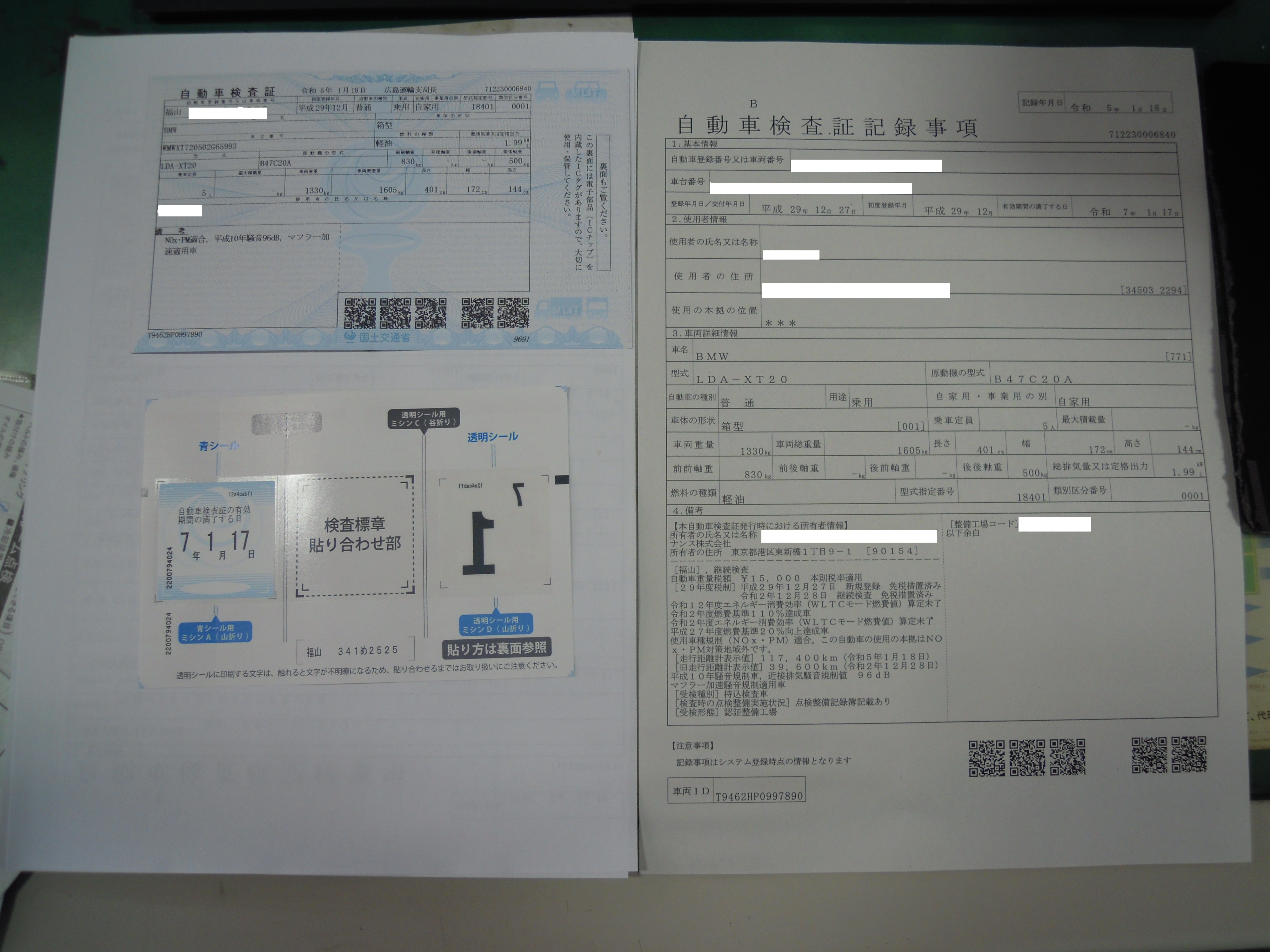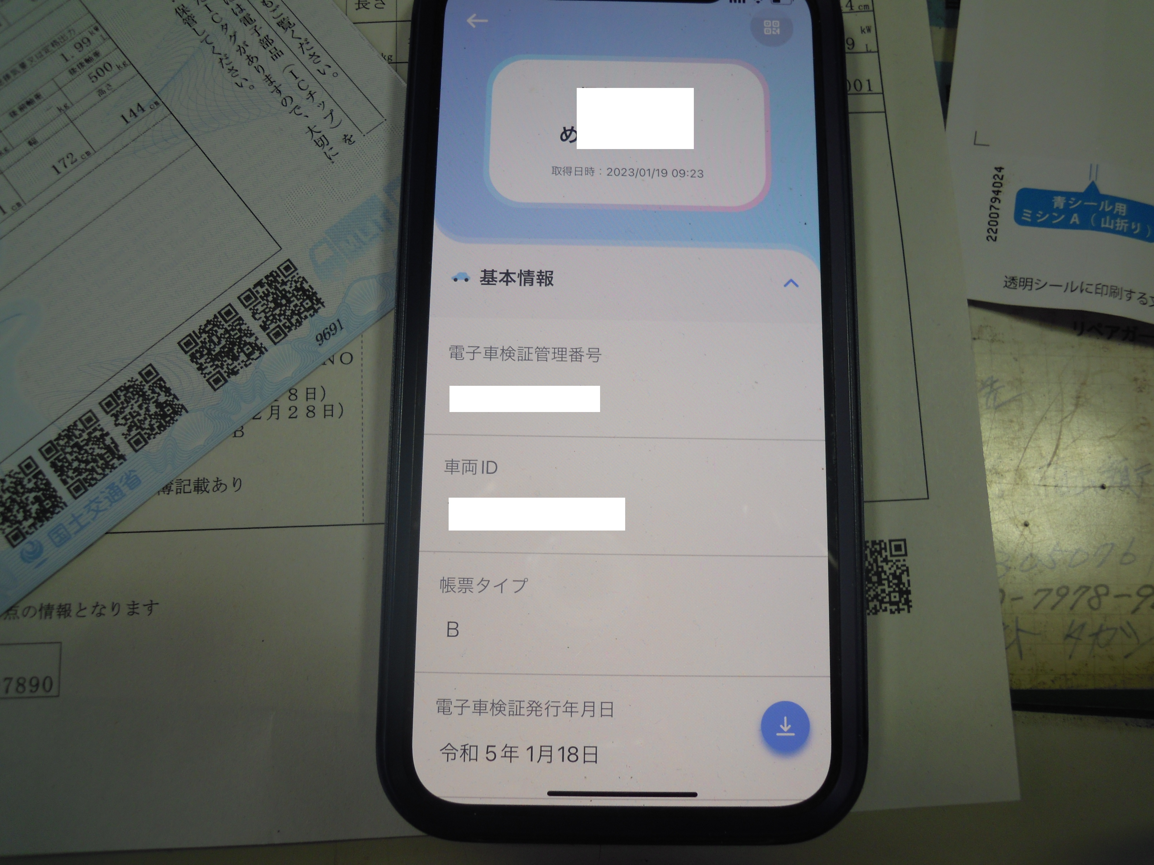 車検証が新しく、小さくなりました。