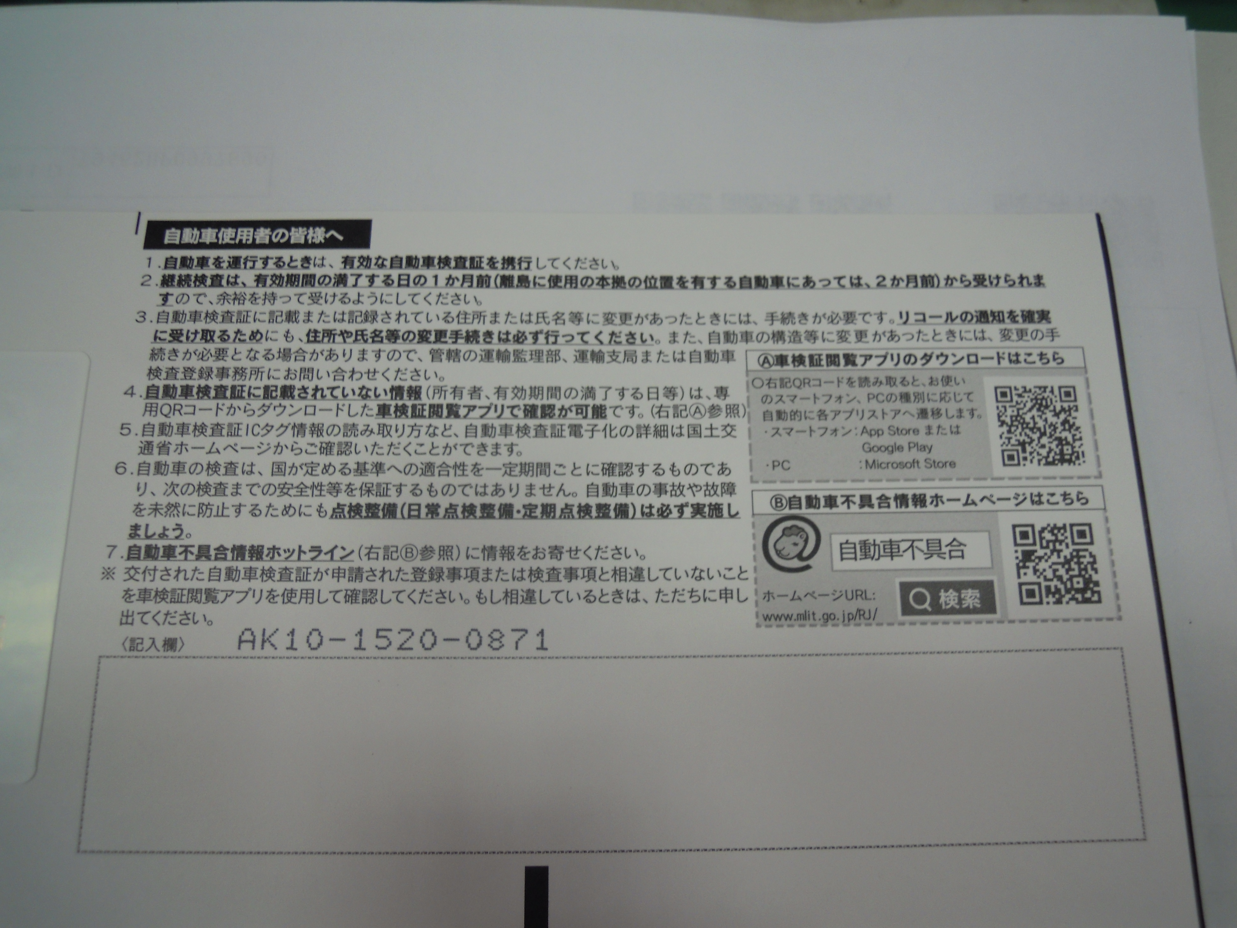 車検証の裏に車検証回覧ソフトのダウンロード方法が