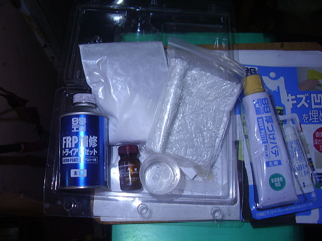 FRPの補修セットで大まかに修復します。