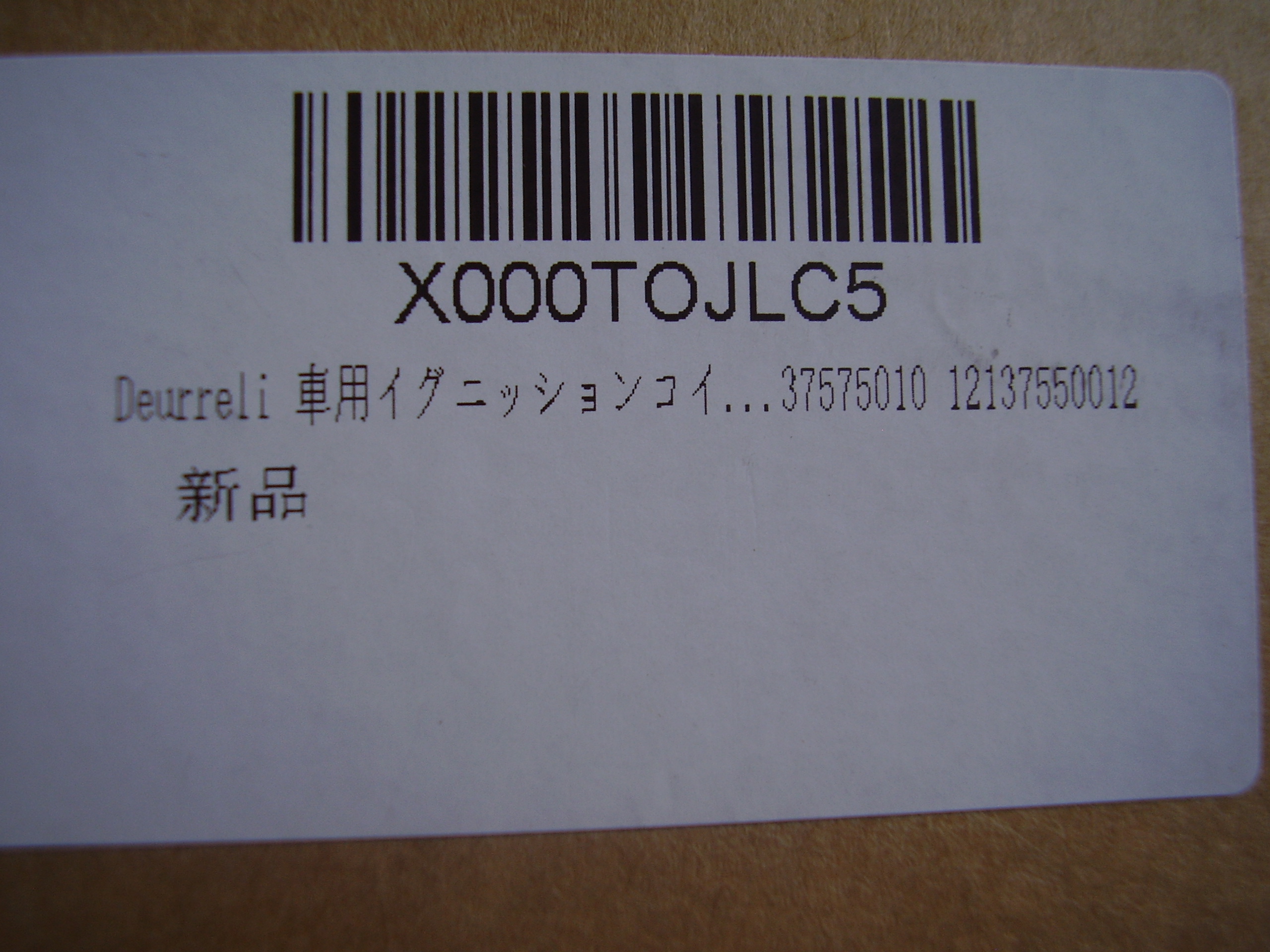 段ボール箱にシールが貼ってあり、新品と記載