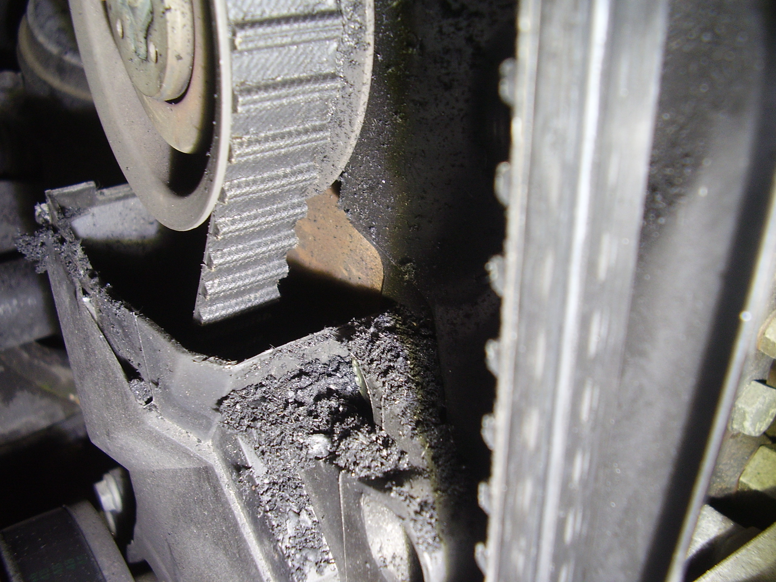 これはすごい!ベルトが削れて粉が出ている!