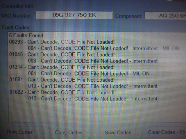 まず、VCDSテスターにてエンジンのECU故障メモリー