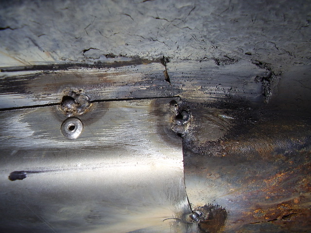 車体にリベット止めをして、その後溶接で補強