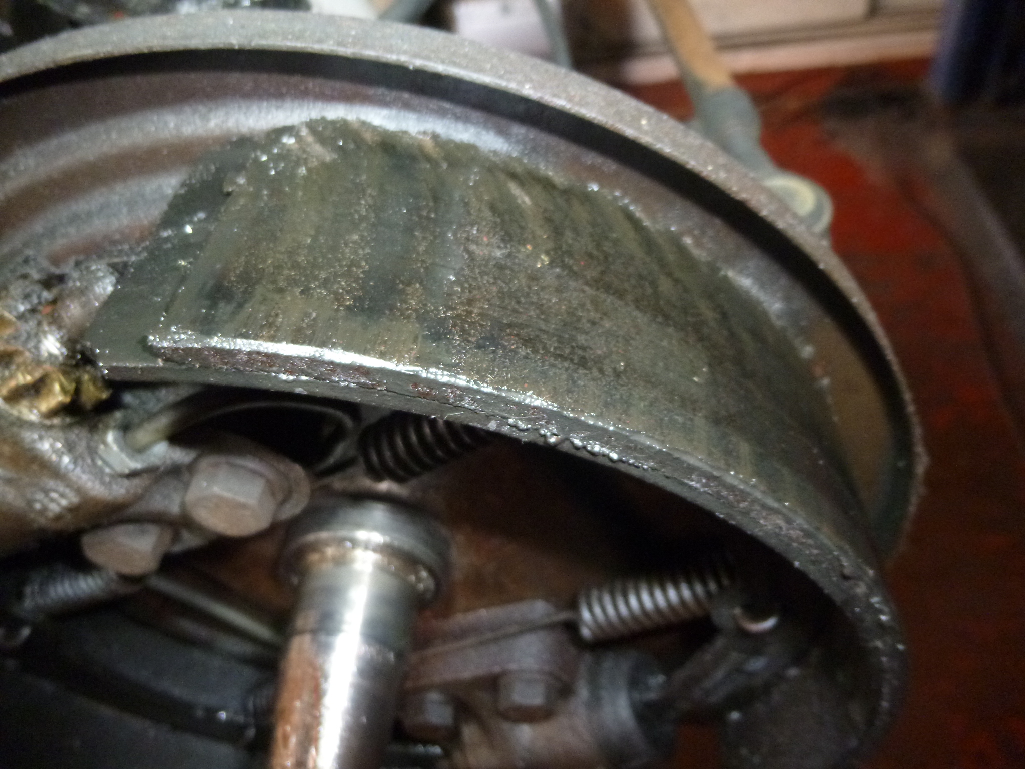 ライニングもブレーキオイルでベタベタ!